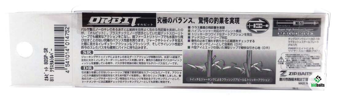 Воблер ZipBaits Orbit 80SP-SR (80мм, 8,5г) цвет 811 Crystal Silver