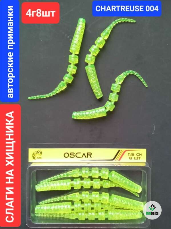 Слаги на хищника OSCAR FLOATING 11.5 см,4 гр,8 шт,color 004 CHARTREUSE