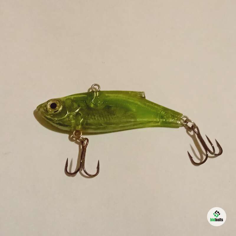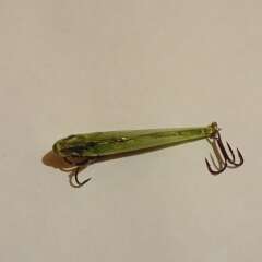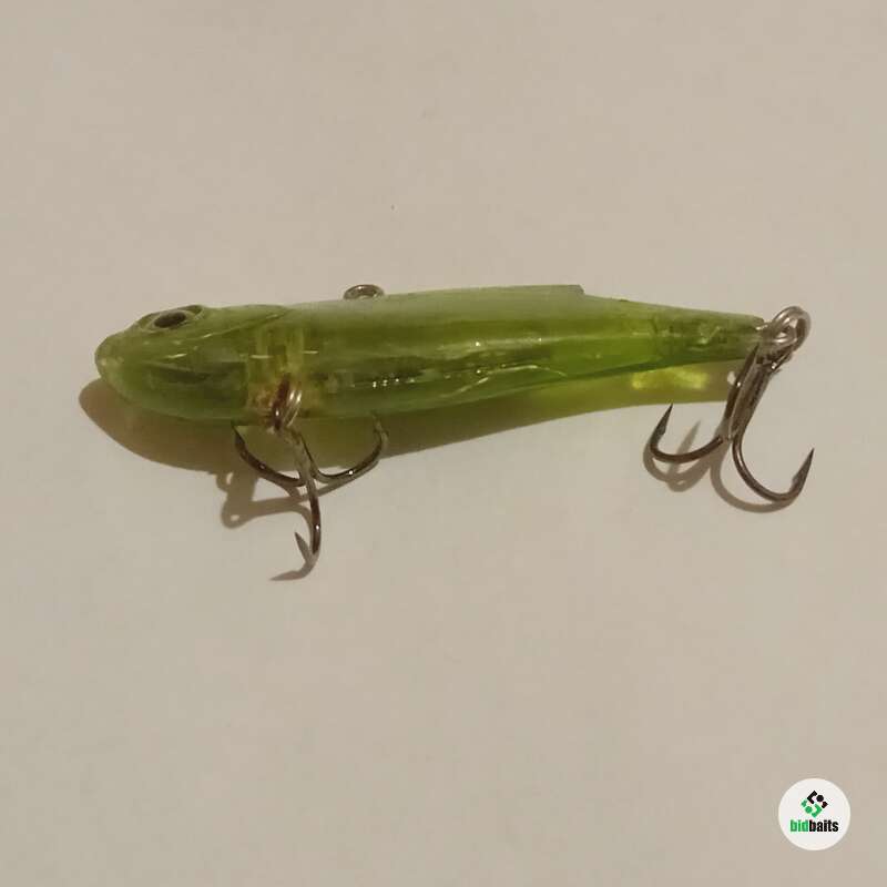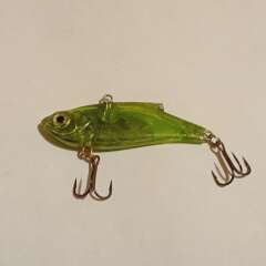 Тонущий виб 55мм, 9,7гр. Состояние рабочее, ободрано покрытие, есть трещины по корпусу, воду не пьет, на надежность особо не влияет.