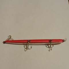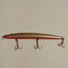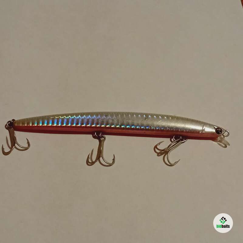 Тонущий воблер с системой дальнего заброса 130мм, 11гр. Состояние хорошее, есть незначительные сколы лакокрасочного покрытия.