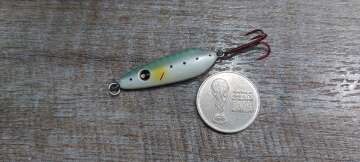 Состояние на фото - в этом случае затрудняюсь дать объективную оценку воблеру, как правило следы использования ярко выражены, может быть не всё хорошо с лкп,но видимых дефектов по функционалу не обнаружено