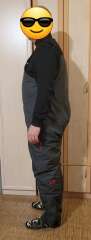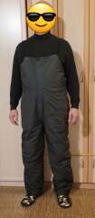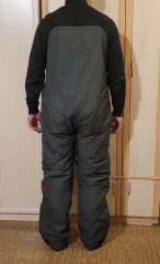 Штаны-комбинезон утягиваются по талии и благодаря высокой спинке надежно защищают поясницу. Внизу имеются разрезы на молниях, что позволяет с комфортом снимать и надевать обувь. Подтяжки съемные, легко отстегиваются.