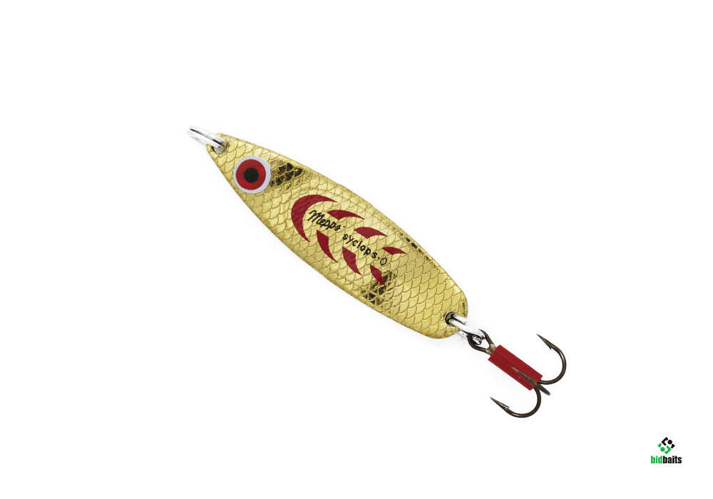 Блесна не имеет мягкого профиля, ее форма образована сопряжением плоскостей, в том числе, образующих в хвостовой части «ребро устойчивости», гарантирующее SYCLOPS устойчивую, без «свалов», игру как на спокойной воде, так и при любой скорости течения. Благодаря идеально расположенному центру тяжести и удачному соотношению между весом и площадью приманки, все размеры SYCLOPS сохраняют превосходную игру даже при свободном падении после прекращения проводки. Как известно при ловле лосося и щуки такой приём бывает незаменим. Кроме того, эффект от движения блесны значительно усиливается за счет игры света, отражаемого плоскостями. Стандартный вариант SYCLOPS имеет окраску серебряного, золотого и черного цветов, с красным и черным рефлекторным рисунком. Кроме этого, MEPPS производит блесны, декорированные желтой наклейкой с красным рисунком. SYCLOPS — практически идеальная приманка для всех видов хищных рыб на всех водоемах и при любых условиях ловли.