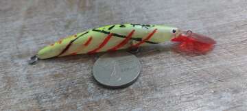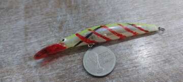Состояние на фото - в этом случае затрудняюсь дать объективную оценку воблеру, как правило следы использования ярко выражены, может быть не всё хорошо с лкп,но видимых дефектов по функционалу не обнаружено