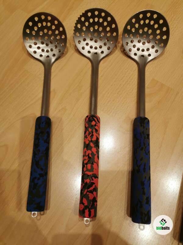 Черпаки из титана ручной работы. Выбиты из листа толщиной 1.5мм без соединений (сварки, болтов, заклепок и тд). Всё крепко и надёжно. Ручка из эва. В наличии чаши 100, 110 и 115мм. Длины 400мм + -. Вес 110-136г, в зависимости от длинны и диаметра чаши. Доставка за счёт покупателя.