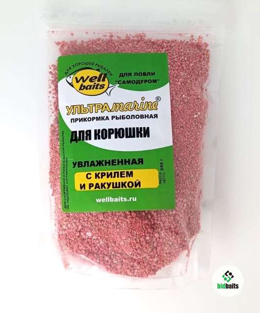 Прикормка УЛЬТРАМАРИН Корюшка (увлажненная) (с КРИЛЕМ и РАКУШКОЙ) красная с мерной ложкой 250гр