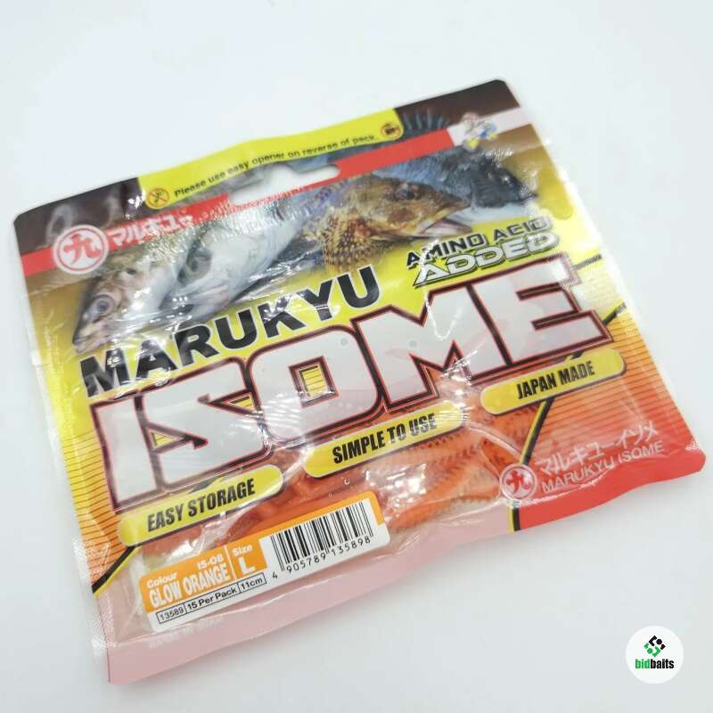 Marukyu силиконовые "съедобные" черви Isome Soft IS-08 13589 size L (11см) цвет оранжевый Glow 15шт