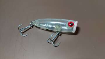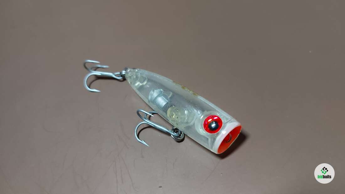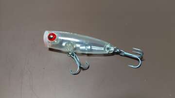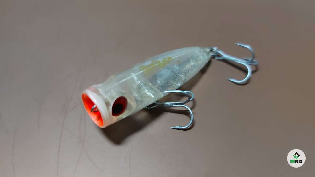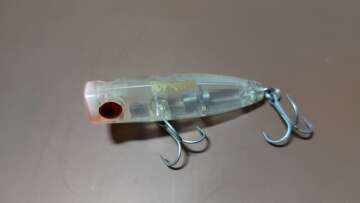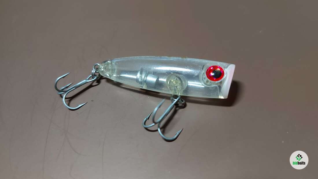 Компактный поппер со звучным бульканием. Имеет небольшую огрузку в хвостовой части, в воде занимает наклонное положение. Предназначен для ловли окуня и щуки.