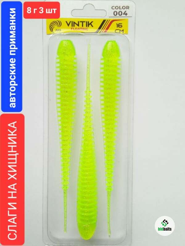 Слаги на хищника VINTIK FLOATING 16 см,8 гр,3 шт,color 004 CHARTREUSE