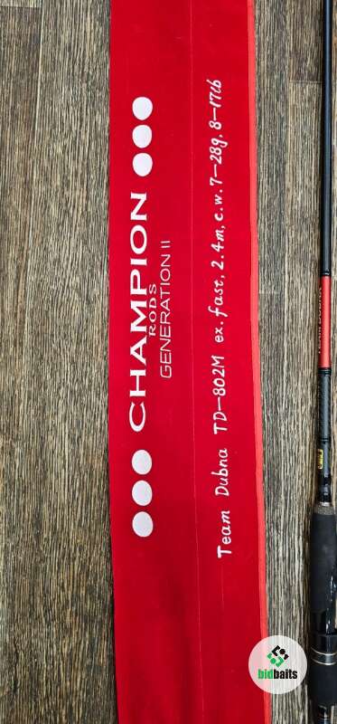 Спиннинг team dubna champion rods generation 2 td-802m в прекрасном состоянии, единственное отклеелась наклейка на катушко держателе с названием модели.