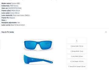 Оправа Fantail PRO выполнена из легкого и прочного пластика TR90, который используется как основной материал для всех оправ Costa. Модель наделена всеми преимуществами PRO cерии - полностью регулируемыми и вентилируемыми носовыми упорами, каналами для вентиляции и отвода влаги, а также боковыми щитками.