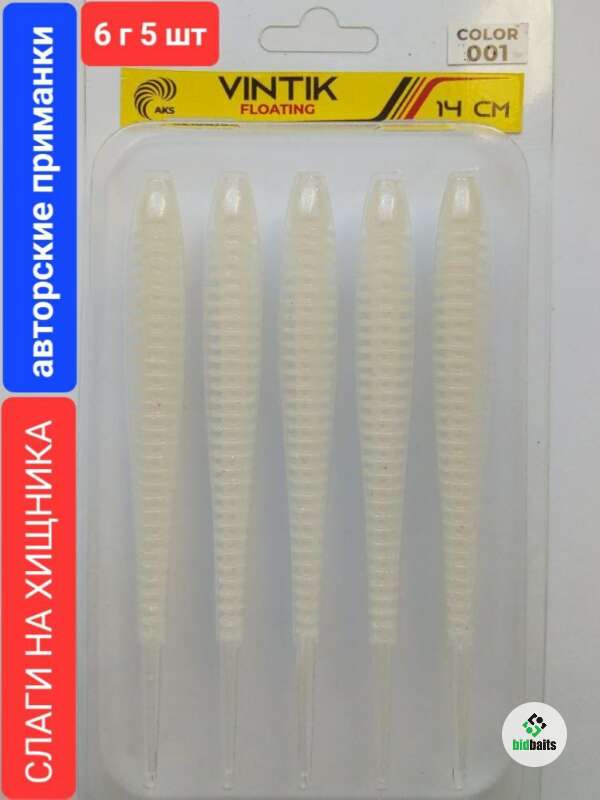 Слаги на хищника VINTIK FLOATING 14 см,6 гр,5 шт,color 001 Белый перламутр