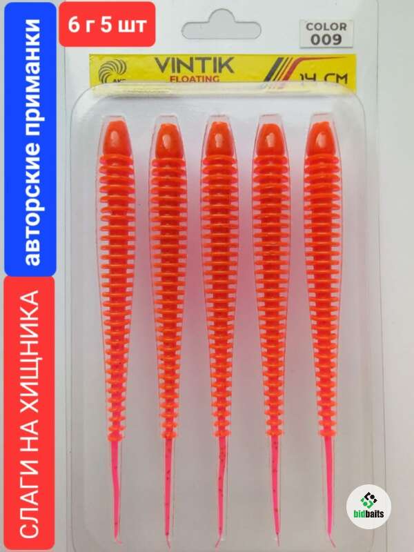 Слаги на хищника VINTIK FLOATING 14 см,6 гр,5 шт,color 009 LOX Морковка