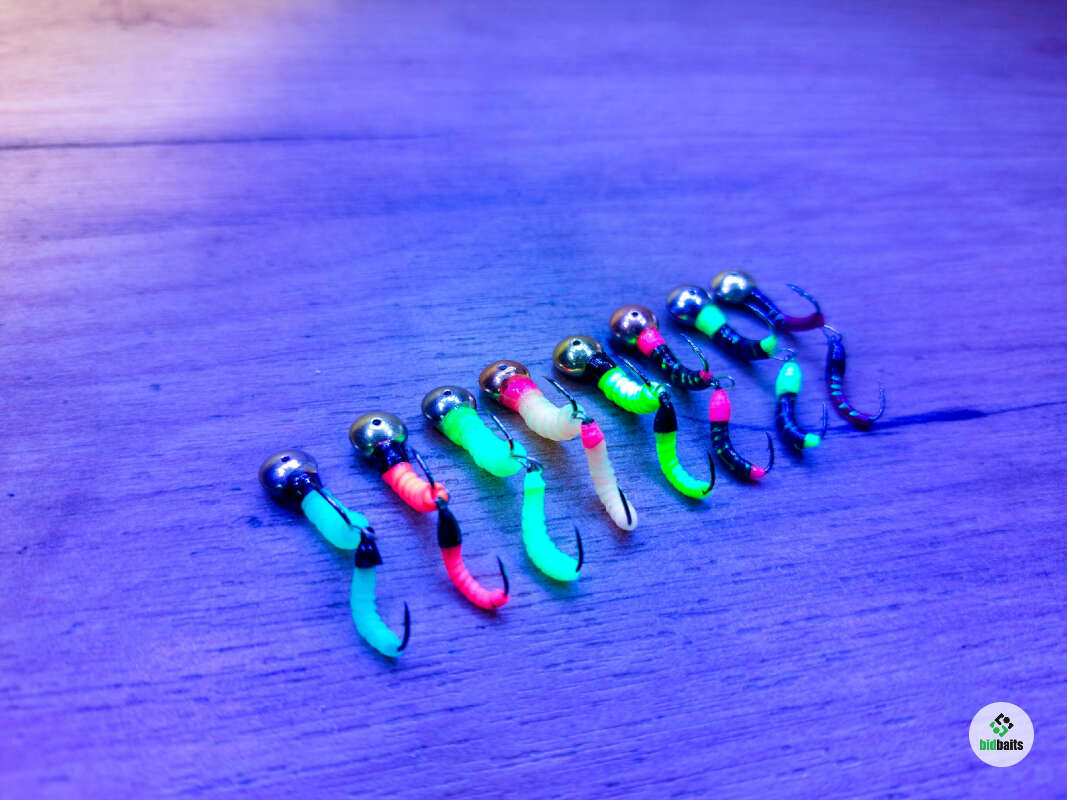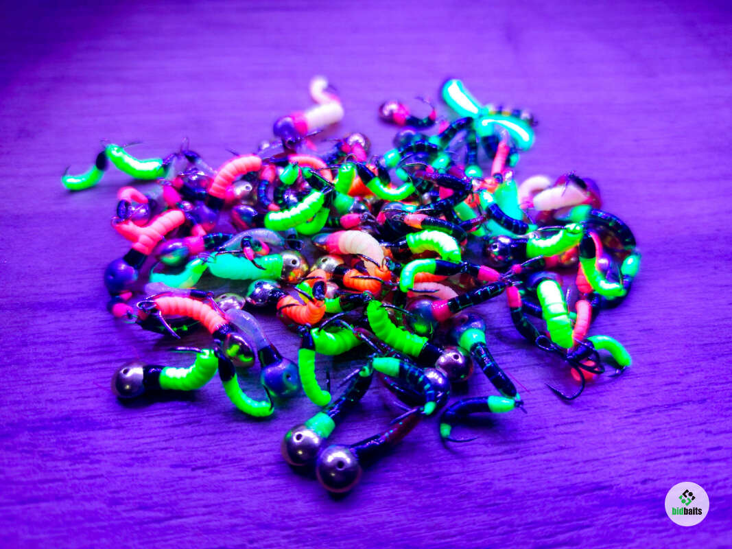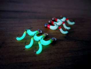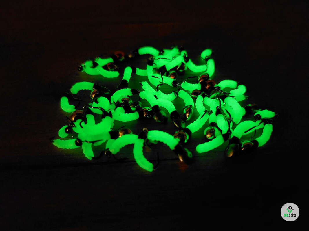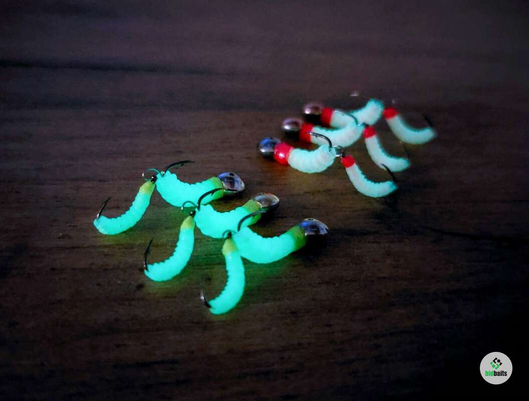 Мормышка двойная имитирует опарыша и мотыля и других кормовых объектов, которым питается рыбы. Состоит из двух частей: паяная мормышка на крючке #12 и подвеска на крючке #14. Тело мормышки выполнено из материала со светонакопительным эффектом, т.е. светится в темноте, а также светится в УФ-лучах. Фосфорные мормышки для зимней рыбалки, светящиеся подо льдом, там, где мало или практически нет света, способны обеспечить Вам улов, когда другие виды мормышек не работают. Мормышки подходят также для мормышинга отлично работают и в летнее время по разнорыбице: окунь, плотва, лещ, густера и др.