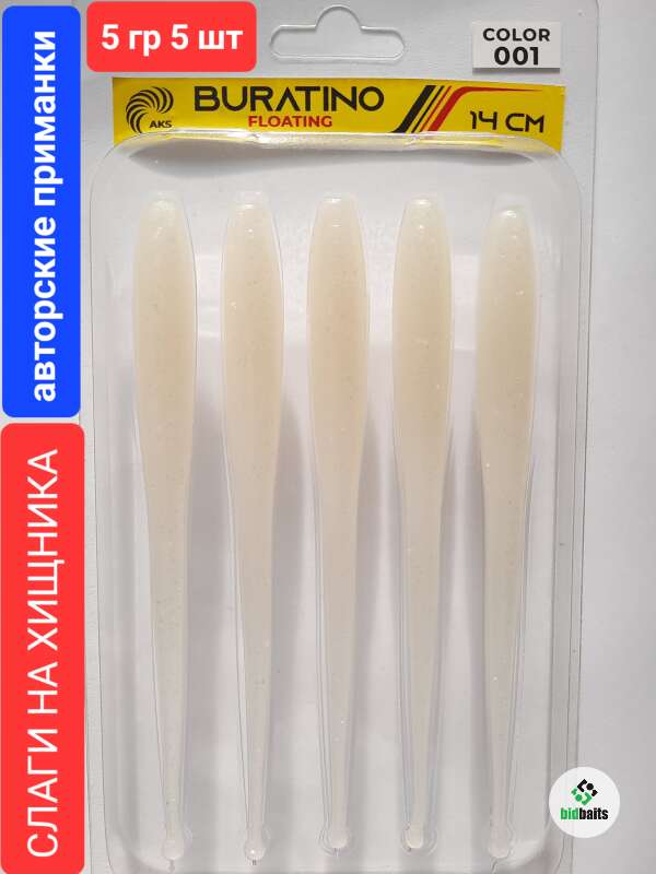 Слаги на хищника BURATINO FLOATING 14 см,5 гр,5 шт,color 001 Белый перламутр