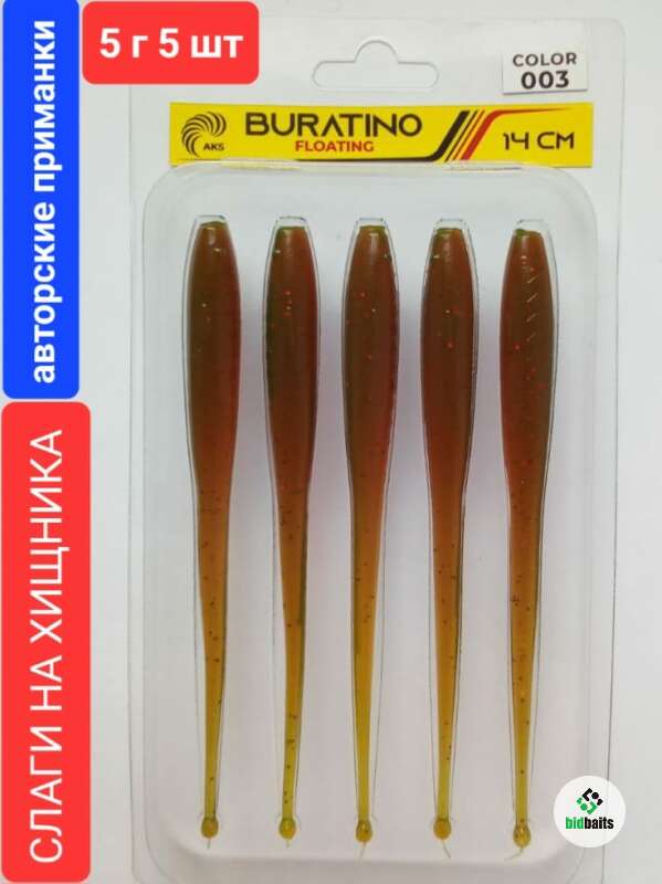 Слаги на хищника BURATINO FLOATING 14 см, 5 гр, 5 шт,color 003 Моторное масло (зеленая шуба)