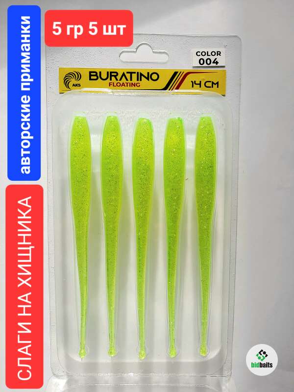 Слаги на хищника BURATINO FLOATING 14 см, 5 гр, 5 шт,color 004 CHARTREUSE