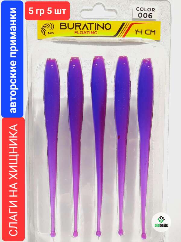 Слаги на хищника BURATINO FLOATING 14 см,5 гр, 5 шт,color 006 LOX Коричневая шуба