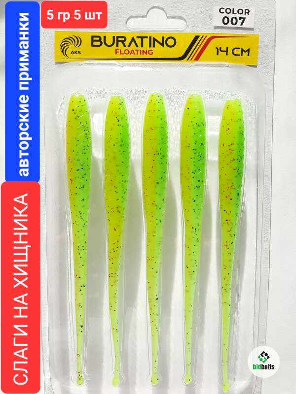 Слаги на хищника BURATINO FLOATING 14 см,5 гр, 5 шт,color 007