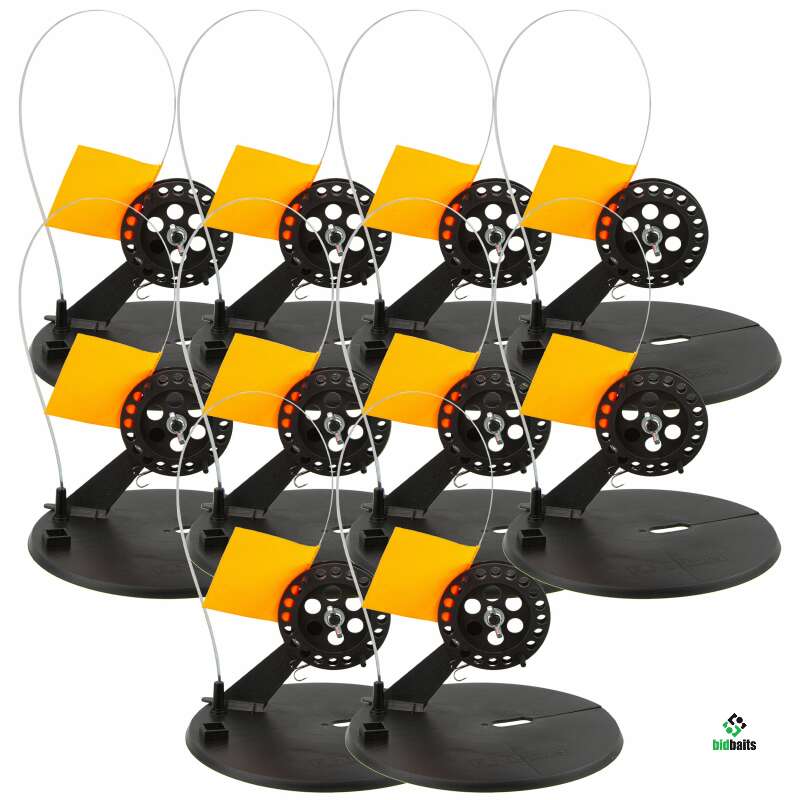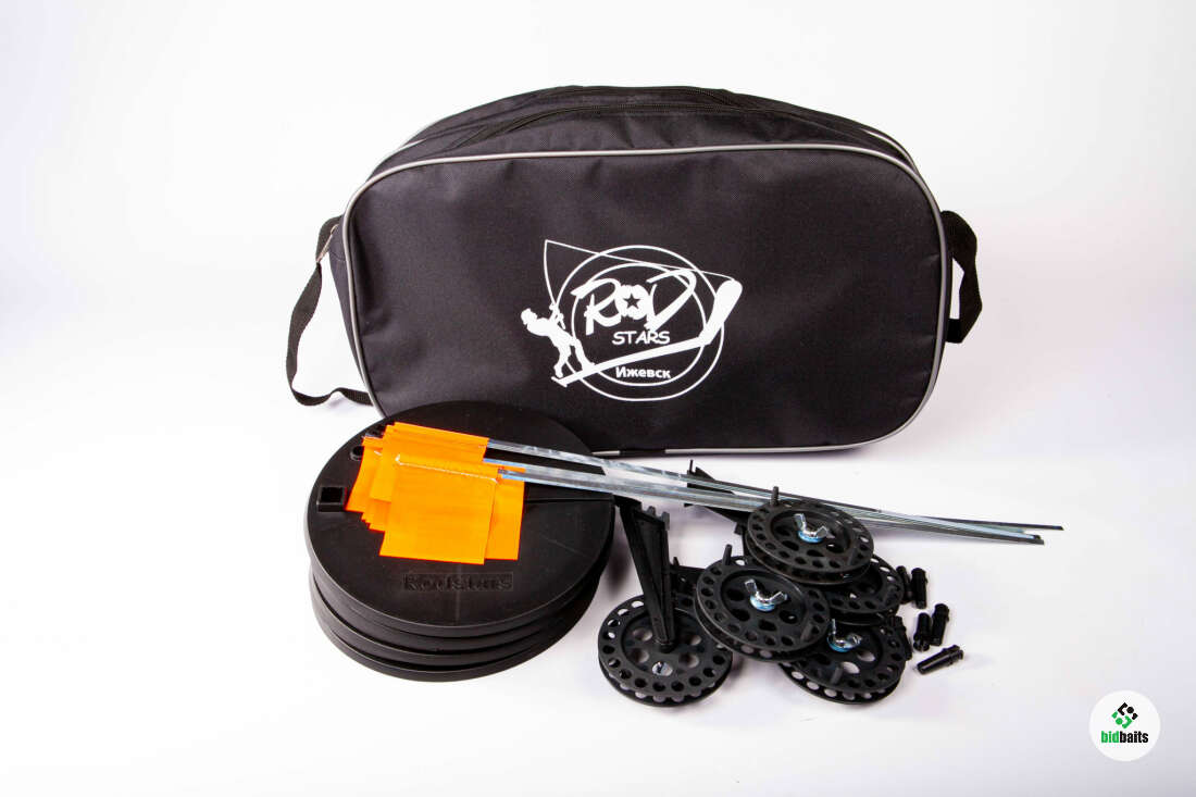 Набор жерлиц RodStars в сумке 10 шт, пластиковая стойка катушка 75 мм. Не оснащённые, новые.