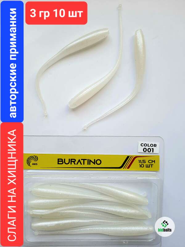 Слаги на хищника BURATINO FLOATING 11,5 см, 3 гр, 10 шт,color 001 Белый перламутр