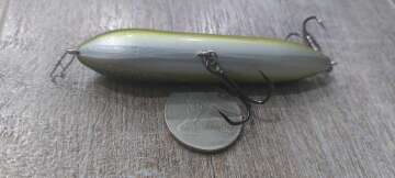 Состояние на фото - в этом случае затрудняюсь дать объективную оценку воблеру, как правило следы использования ярко выражены, может быть не всё хорошо с лкп,но видимых дефектов по функционалу не обнаружено