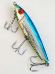 Mirrolure 51MR CHBL 90 мм 18,5 гр тонущий мелководный твичбейт диапазон глубин 0,3-1,2+ метра Как новый, был куплен 20 лет назад, лежал запасным в коробке, может быть пара мелких царапин от крючков при хранении. Эта модель выпускается до сих пор и уже более 70 лет, а это о многом говорит. Плохие воблеры так долго не живут ...