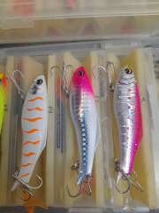 Продам самые ходовые линейки ратлинов DUEL HARDCORE Fintail vibe 80, 24 g - 7шт. И DUEL HARDCORE Fintail vibe 70,18 g - 2 шт.Всего 9 шт.Все оригиналы,без коробок,воды не видели,собирал для себя,сложил в коробочку,но так дело до рыбалки и не дошло.В линейке 2 синих ратлина(80-ки,оба по 24 гр.,на фото в линейке из 7 штук -это первый и отдельно на фото второй).Продаю всю линейку из 9 штук комплектом(по отдельности не продаю).по 750 р.за штуку.