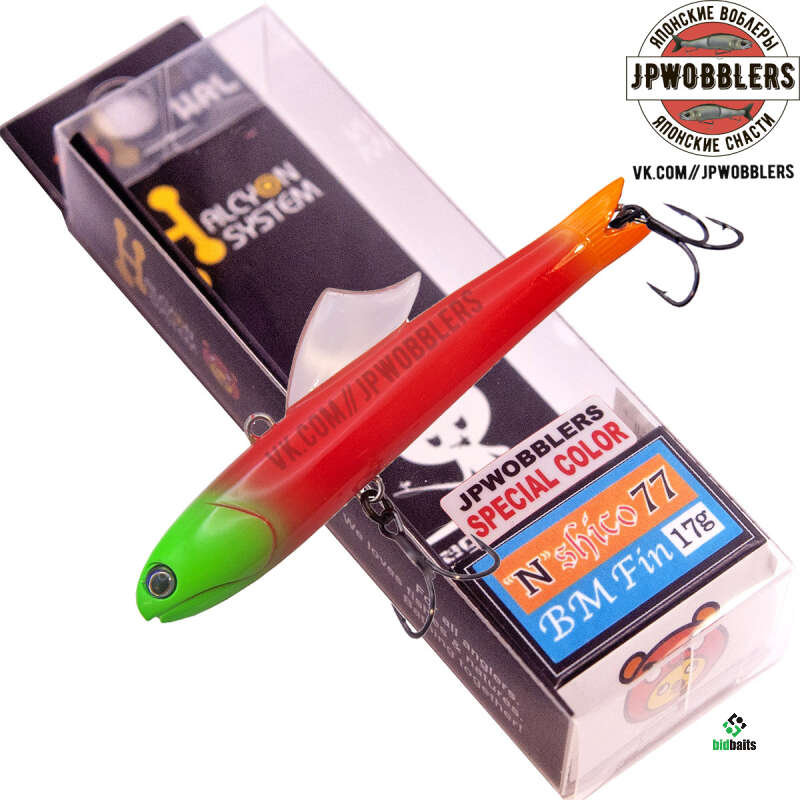 Очень подвижный и шумный виб Halcyon System "N" Shico BM Fin с активными, частыми колебаниями и значительным уходом в сторону при сбросе. Хорошо отзывается на анимацию в виде мормышинга и раскачки. Работает как на коротких подбросах, так и на медленных подъёмах с затяжными паузами. При своих средних габаритах веса и длины Halcyon System 'N' Shico 77 одинаково хорош как для щук и судаков, так и для прудовой форели..