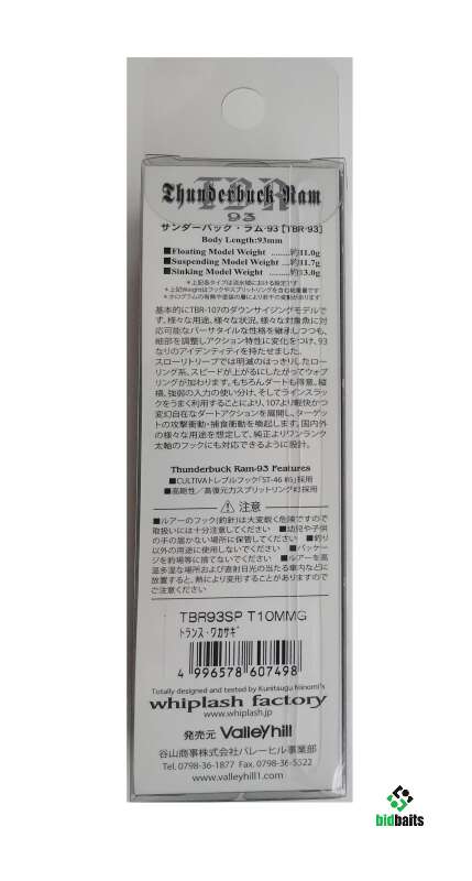 воблер WHIPLASH FACTORY Thunderbuck Ram TBR-93SP #T10MMG Trans Wakasagi