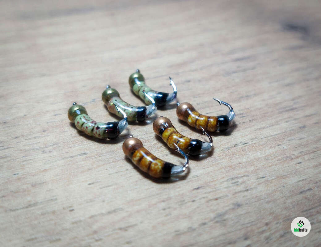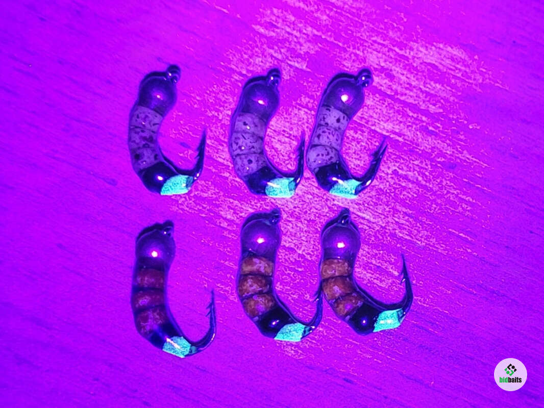 Мормышки безмотылки имитируют личинок Ручейника - естественный корм и любимое лакомство рыбы. Зимой и летом такие насекомые составляют основной рацион рыбы. Подходят для ловли большого разнообразия : окунь, лещ, плотва, карась, красноперка, хариус и язь и др. Особенность данного набора – это нижняя часть мормышки, которая светятся в ультрафиолете и в темноте.