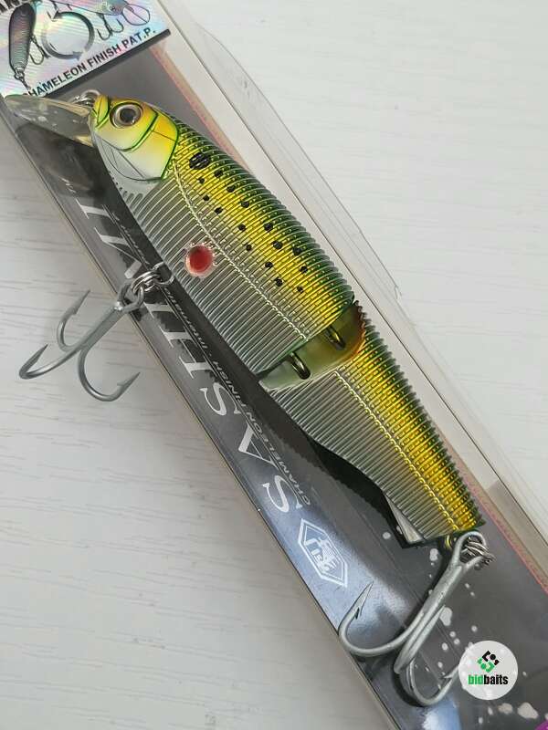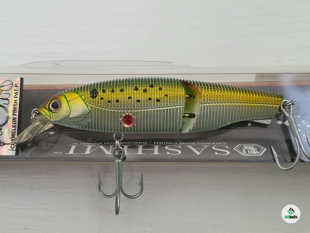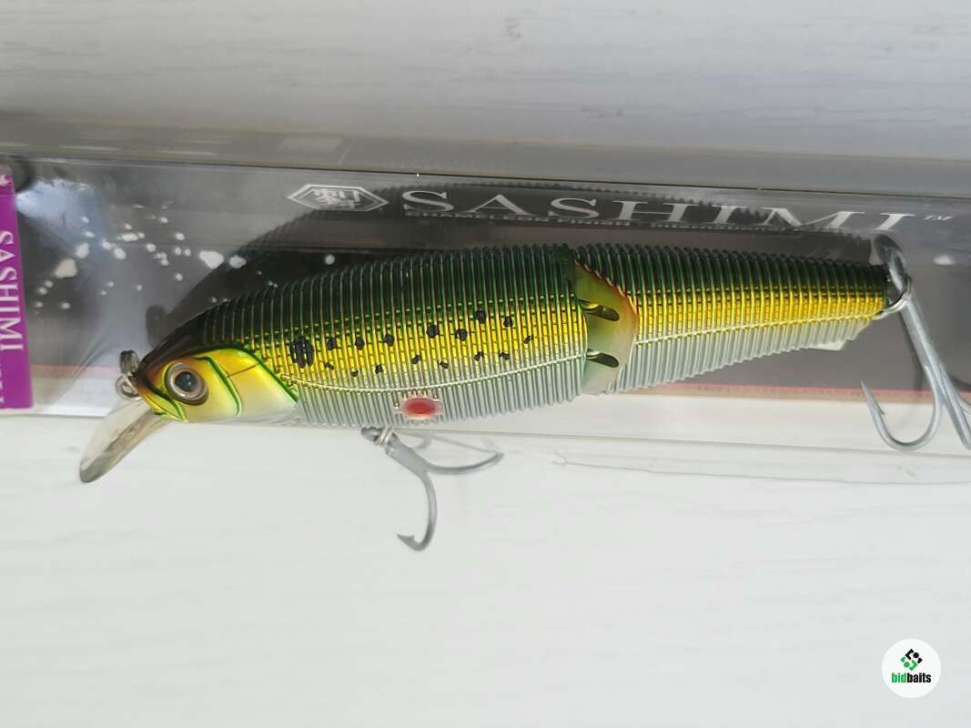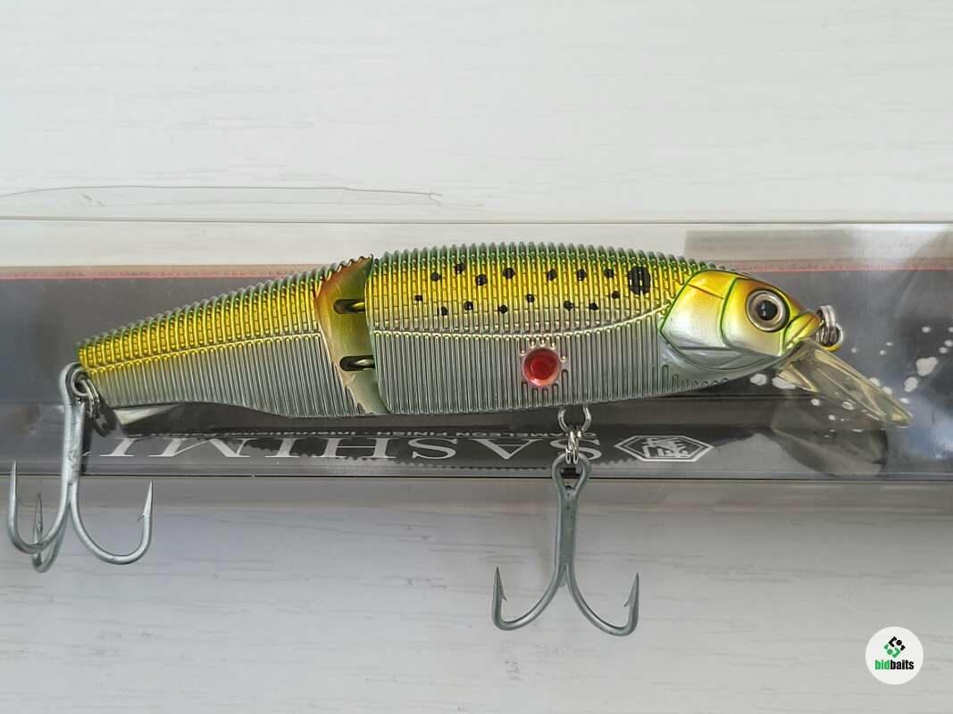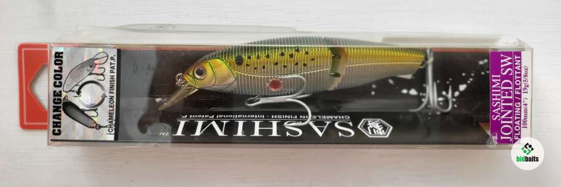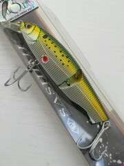 Yo-Zuri Minnow sashimi jointed R970 10 см 19 гр мелководный составник с заглублением 0,9 метра. Модель я эффектом "хамелеон", меняет окраску в зависимости от угла зрения. По утверждению фирмы смена цвета при вибрации работает как "мигающий фонарик", увеличивая заметность приманки. Новый был куплен 15 лет назад