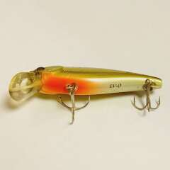 Тонущий воблер 67мм, 14,7гр. Состояние отличное, есть незначительные потертости лакокрасочного покрытия.