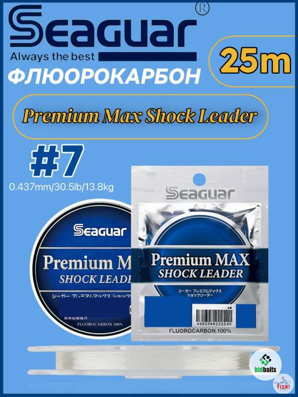 Seaguar Premium Max Shock Leader – это 100% флюорокарбон высокого класса, устойчив к UV излучению и имеет хорошие показатели разрывных усилий относительно диаметра.