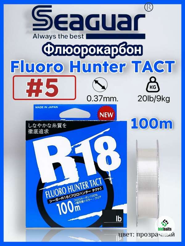 Флюорокарбон Seaguar R18 Fluoro Hunter TACT 100m #5 (0.37mm/20lb/9kg)