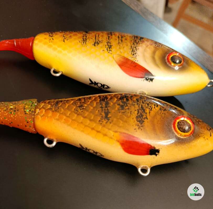 Продаю ВНИМАНИЕ!!! - ОДИН из ДВУХ (на Ваш выбор) джеркбейтов известного мастера DOK (Россия). Один чуть больше, один чуть меньше. Медленно тонущие. Мягкий роллинг на падении.