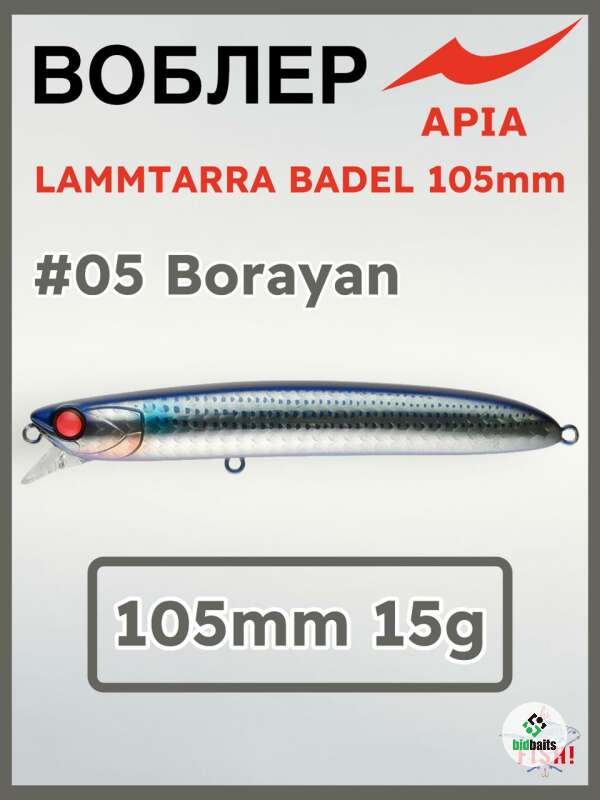 Apia Lammtarra Badel 105 - привлекательная приманка класс minnow, младшая из семейства Lammtarra. Отличается хорошей игрой при равномерной проводке (в отличии от многих) и легком твичинге. Прекрасно зарекомендовала себя при облове мелководных рек, заливов, лиманов, каналов, береговых отмелей и кос и т.п.. Уральские и Московские судачатники высоко отметили уловистость Apia Lammtarra Badel 105 по ночному судаку.
