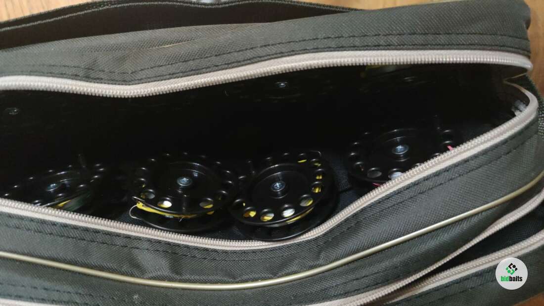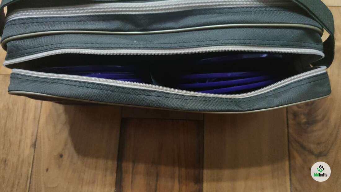 Очень удобная для сборки и разборки сумка с тремя отсеками, очень качественно сшита. Первый отсек - для флажков, второй - для оснований (размещаются основания по 5 единиц в двух карманах), третий отсек - для стоек с катушками (каждая стойка катушки размещена в отдельном кармане.