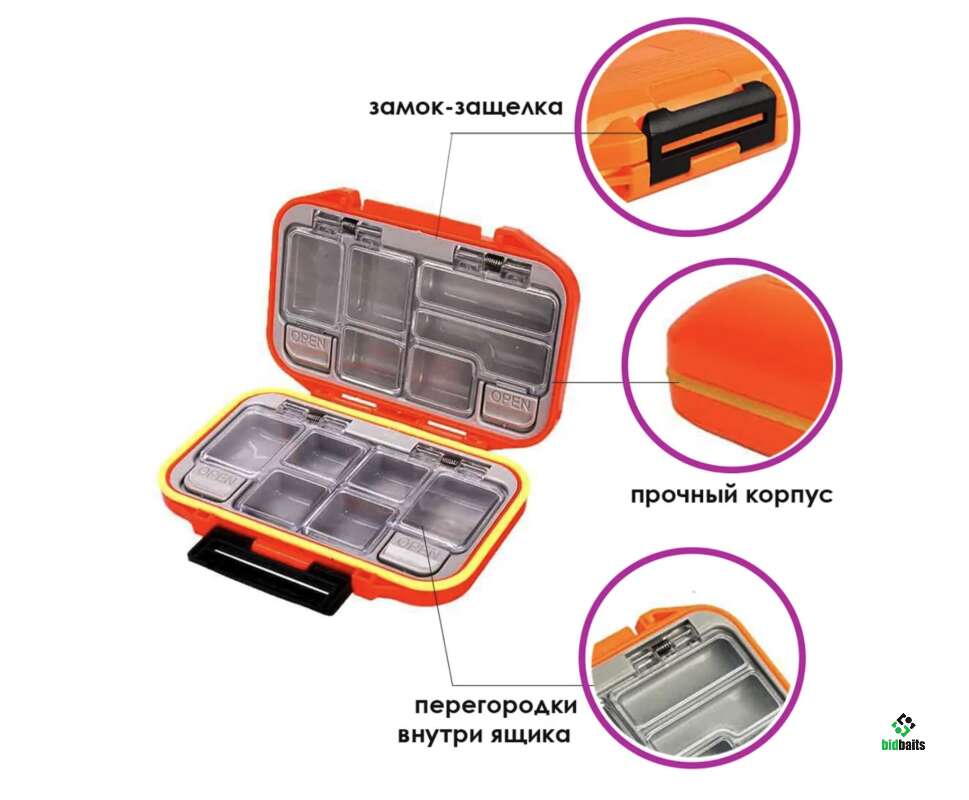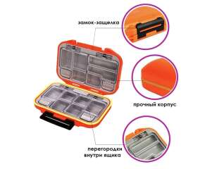 Ящик для рыболовных снастей подходит для хранения рыболовных приманок, крючков и т.п. Компактный и лёгкий, идеально подходит для транспортировки в рюкзаке, сумке или внешнем кармане жилета.