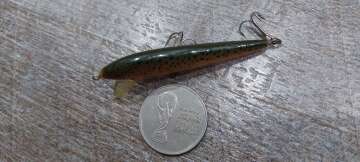Состояние на фото - в этом случае затрудняюсь дать объективную оценку воблеру, как правило следы использования ярко выражены, может быть не всё хорошо с лкп,но видимых дефектов по функционалу не обнаружено