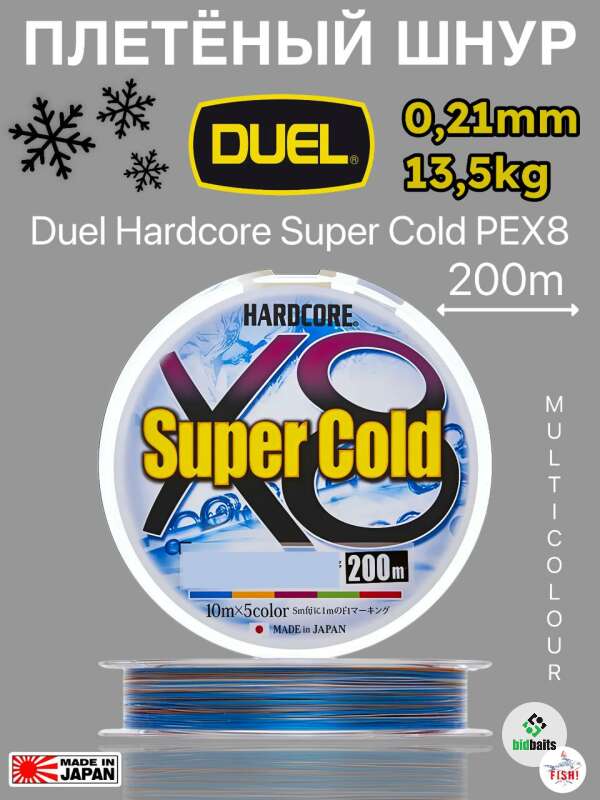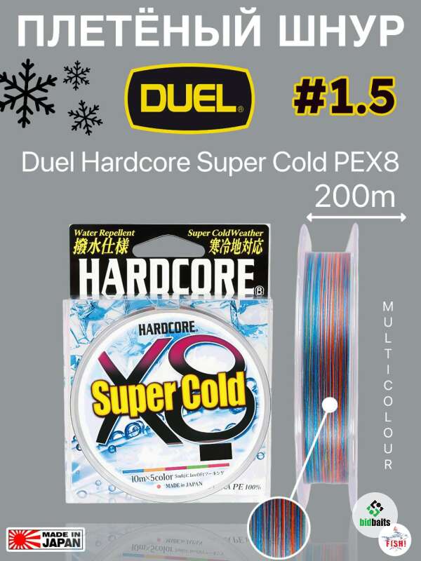 Шнур плетеный Duel Hardcore Super Cold PEX8 200m 5COLOR #1.5