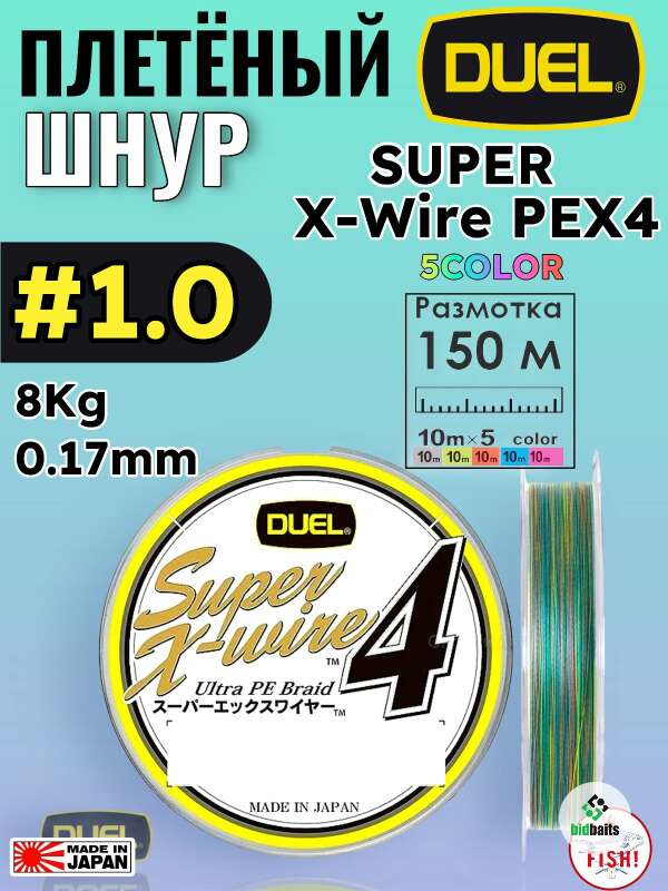 Шнур плетеный Duel Super X-Wire PEX4 150m 5COLOR #1.0 (8Kg 0.17mm)