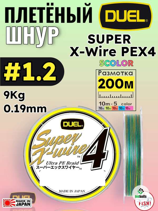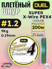 Шнур плетеный Duel Super X-Wire PEX4 200m 5COLOR #1.2 (9Kg 0.19mm)