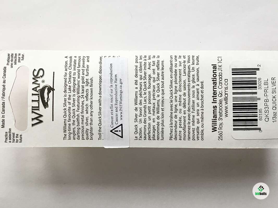 Серия Williams Quick Silver была разработана для ловли крупной озерной форели и чавычи. Кроме того, эта блесна стала известной и среди любителей ловли других видов форелевых, а также судака, щуки и муксуна. 4 года подряд эта блесна занимала 1-е место на соревнованиях на озере Онтарио. Quick Silver с ее отливающей серебром пластиной и яркой голографической наклейкой от Williams привлекают агрессивных хищников. Диапазон цветовых оттенков, в сочетании с ложкой базового серебристого или черного цвета, предлагают рыболову разнообразный выбор для любой ситуации. Экспериментируйте с различными цветами серии, пока не найдете правильную комбинацию для каждых конкретных условий водоема и погоды. Уникальный дизайн и колебания блесен Williams Quick Silver идеально подражают трепыханию раненой рыбки, что не оставит шанса отсидеться хищникам в засаде.