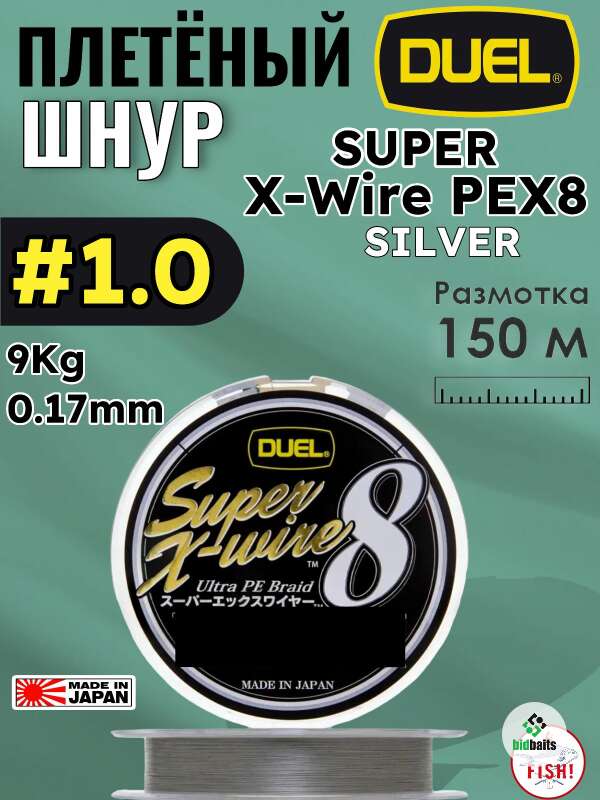 Шнур плетеный Duel Super X-Wire PEX8 150m Silver #1.0 (9Kg 0.17mm)