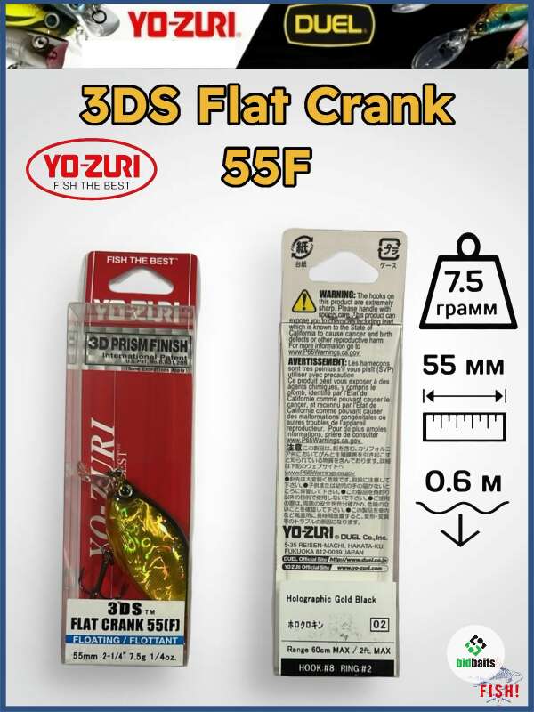 Yo-Zuri 3DR-X Flat Crank 55 F R1443 выпускается в размере 55 миллиметров и обладает положительной степенью плавучести.