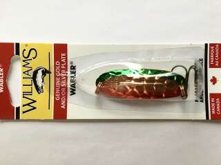 WILLIAMS Wabler cамая популярная и известная модель в линейке колеблющихся блесен, созданная более 75 лет назад. Отштампованная из высококачественной латуни, уникальная форма с ребром жесткости, запатентованная компанией Williams, покрыта тонким слоем благородных металлов - чистым серебром и 24-каратным золотом. Это ребро дополнительно стабилизирует блесну при проводке и позволяет работать с ней в широком диапазоне скоростей от стоячей воды до горных речек. А покрытие надежно защищает текстуру блесны от неблагоприятных условий.