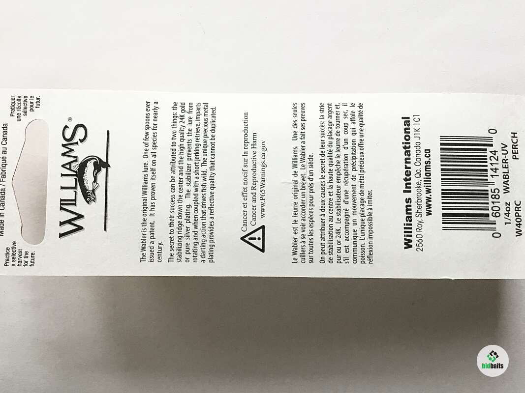 WILLIAMS Wabler cамая популярная и известная модель в линейке колеблющихся блесен, созданная более 75 лет назад. Отштампованная из высококачественной латуни, уникальная форма с ребром жесткости, запатентованная компанией Williams, покрыта тонким слоем благородных металлов - чистым серебром и 24-каратным золотом. Это ребро дополнительно стабилизирует блесну при проводке и позволяет работать с ней в широком диапазоне скоростей от стоячей воды до горных речек. А покрытие надежно защищает текстуру блесны от неблагоприятных условий.