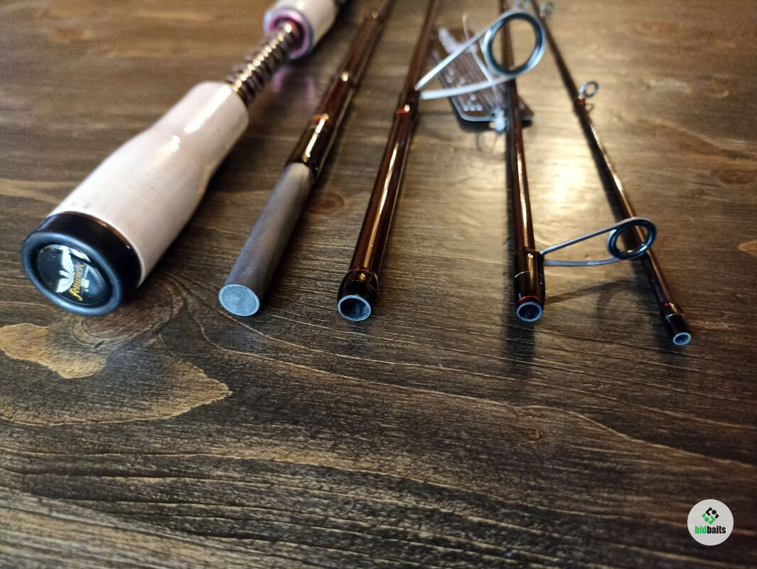 Легкий графитовый бланк с шпиготным соединением секций. Кольца Fuji Alconite в рамках из нержавейки, оригинальная расстановка направляющих Fenwick. Оригинальный катушкодержатель Fenwick с верхним расположением гайки. Раздельная робковая рукоять. Мягкий транспортировочный чехол.
