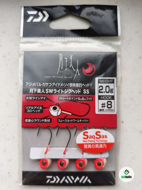 Джиг-головка DAIWA gekkabijin light SW game special, новые в упаковке, светонакопительные (glow/uv). В упаковке 4 шт, вес 2 грамма, размер крючка по японской классификации #8, толщина проволоки 0.56 мм.